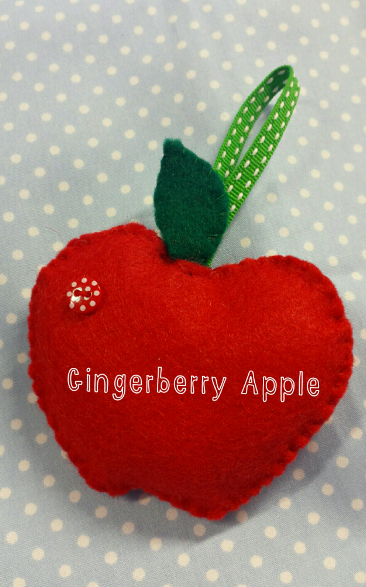 New product…the Gingerberry Apple! July 10, 2014July 18, 2014 / Gingerberrycrafts Made this last night for a lovely regular customer who wanted felt apples as a thank you for her daughter’s teachers… Hasn’t it come out nicely! I love the little spotty button…. Think I will have a play tonight to see how I can enhance it further 🙂 Share this: Click to share on X (Opens in new window) X Click to share on Facebook (Opens in new window) Facebook Like Loading... Related