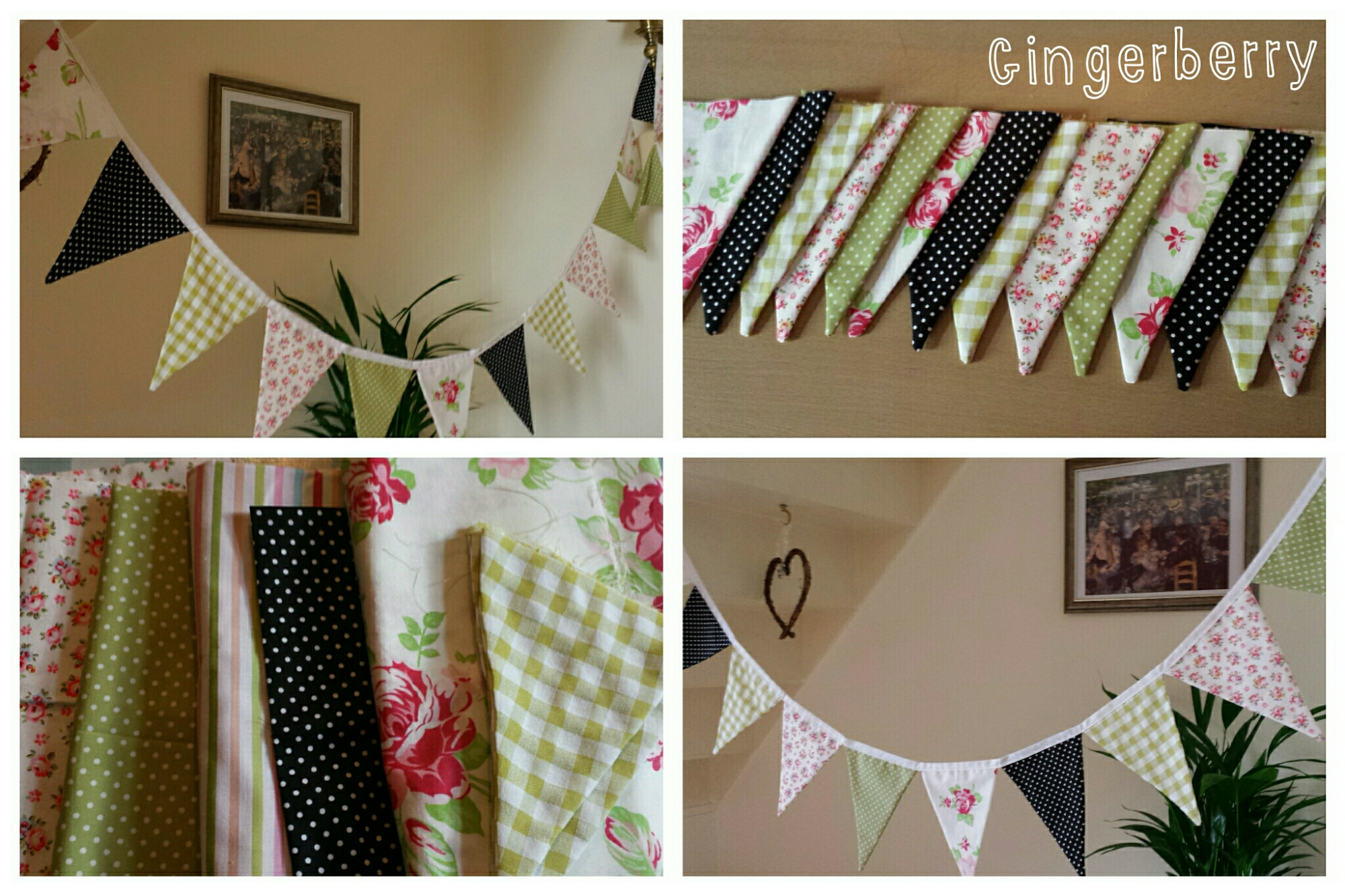 I hope you all agree that the finished bunting looks fab! There is some Tanya Whelan Darla rose fabric in there,  some Cath Kidston small floral, and some lovely Grace & Favour spotty cottons.  At first I thought the black would be too harsh,  but with a black fridge and black worktops….it could really tie in well. Fingers crossed!  Can’t wait to see a customer photo!