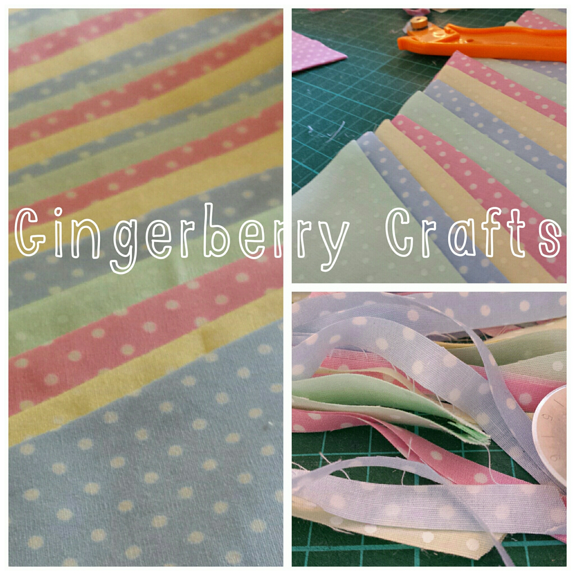 Pastel spotty bunting for a Nursery July 6, 2014July 18, 2014 / Gingerberrycrafts / Leave a comment The finished bunting I made this gorgeous bunting today for a new customer. She wanted the 4 pastel shades to decorate the new nursery for her baby…. Its turned out really well…lovely colours….love it. I really hope she does too! 🙂 Gingerberry pastel fabrics Always trim your triangle flags neatly